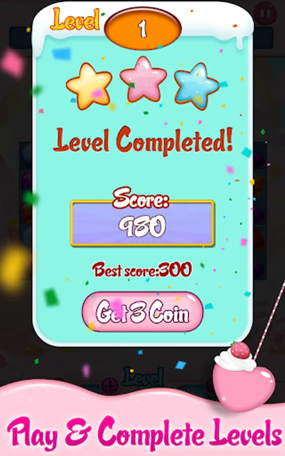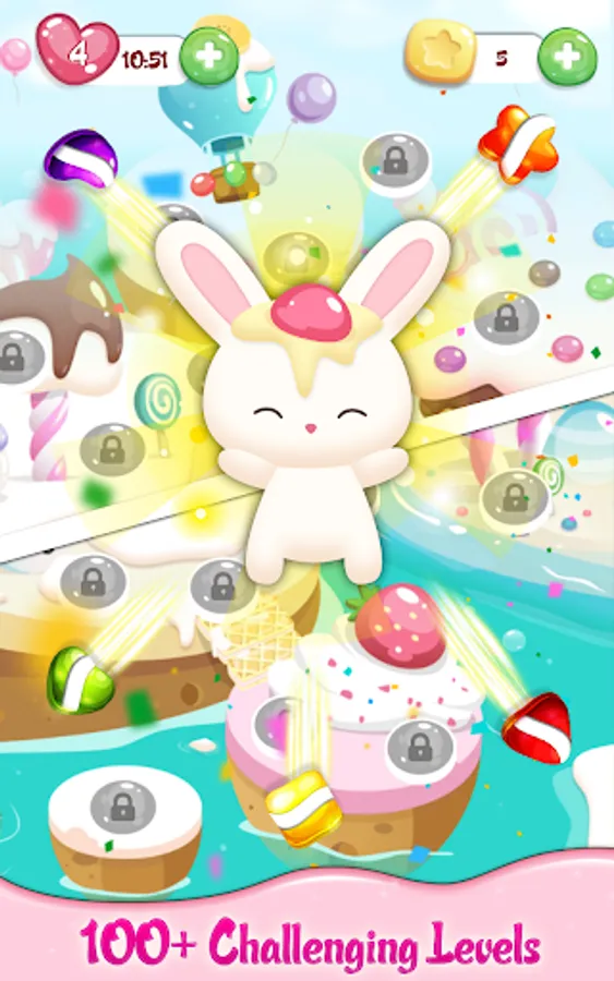 • Fresh-new match 3 game with cute characters & creative gameplay.