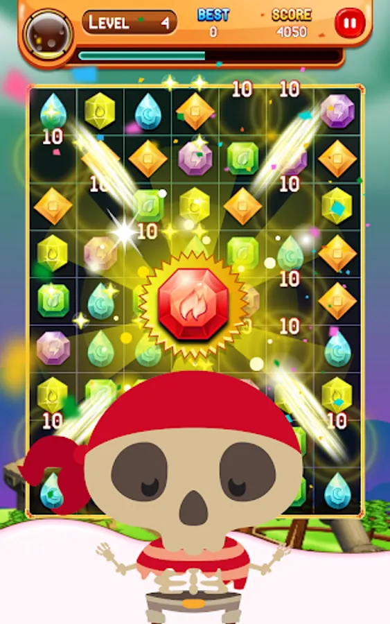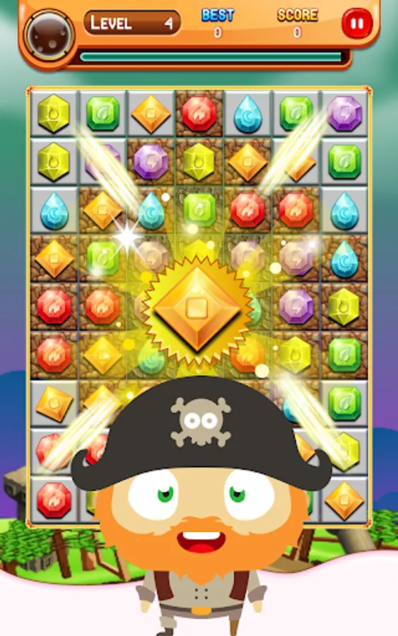 ✔ Arrange 4 same color jewels to perform a lightening Diamond.