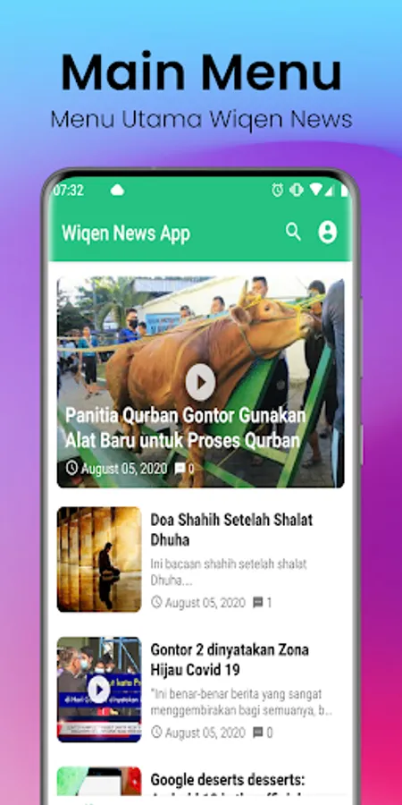 Wiqen News App is an application application news content, articles and Islamic scholarship from the Islamic Boarding School Wiqen (Tourism Qur'an Education) which was established from the lil ummah program Alumni Foundation 10 Windu.
