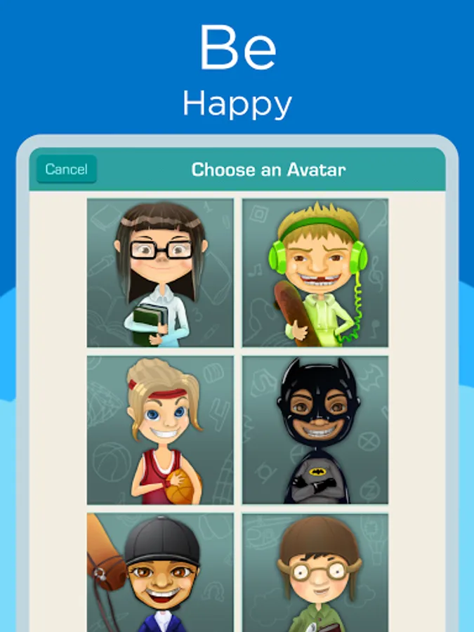 Children can choose one of 16 avatars, or a photo to personalize the app.
