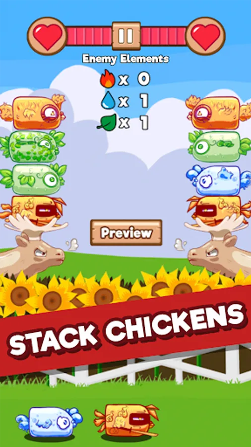 Mobilize your chicken army as you help your moose vie for ultimate supremacy! Use the power of earth, wind, and fire to topple any enemy chickens that stand in your way to the top.