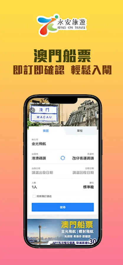 Wing On Travel has been rooted in Hong Kong for 55 years and is committed to providing professional and satisfying travel services. A one-stop travel product booking platform, carefully creating a holiday travel experience. Instantly book air tickets in more than 200 cities around the world, more than 1 million hotels and many low-cost airline tickets for your choice, and also provide Hong Kong and Macau round-trip ferry tickets. Register as a member to enjoy additional travel discounts!