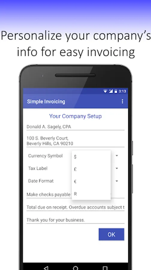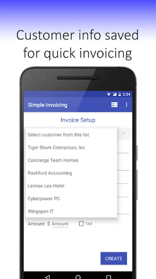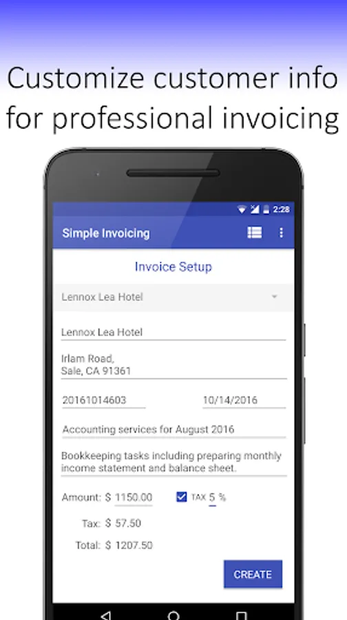 Use Simple Invoicing to create professional invoices in seconds. Simple Invoicing enables you to create invoices quickly, effectively and free. You can use Simple Invoicing online or offline; if you aren’t connected to a Wi-Fi or mobile network, you can still create, view and edit invoices. Simple Invoicing will email or save your invoices to your Google Drive when you have connectivity.