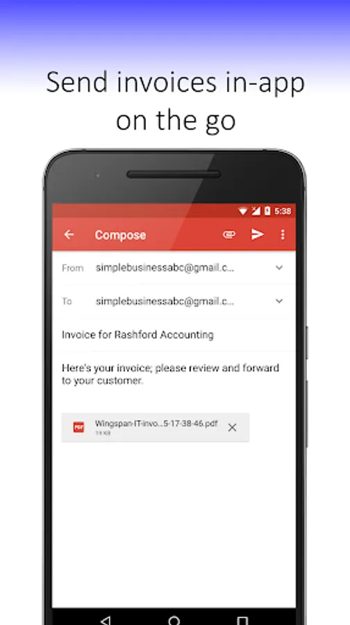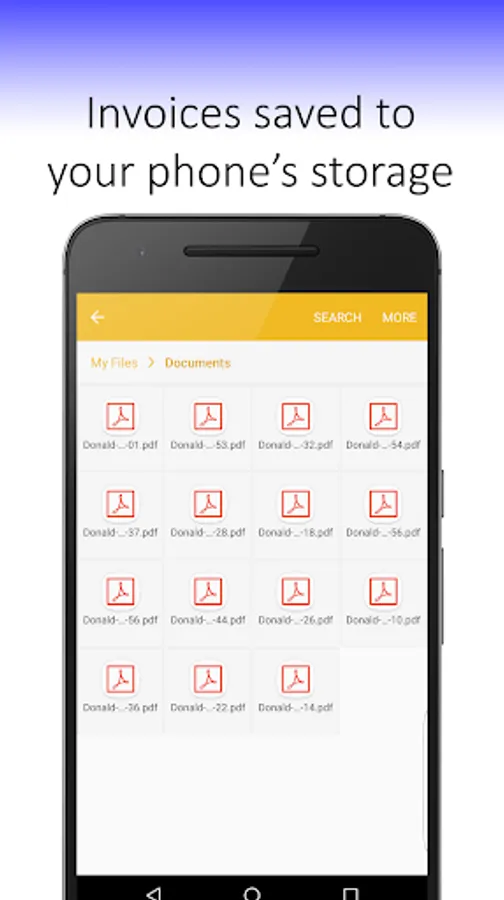 When you’ve finished entering the invoice info, Simple Invoicing will automatically generate a PDF invoice on your phone, then automatically let's you Email the PDF invoice and/or Save the PDF invoice to your Google Drive -- your choice (requires Gmail or Google Apps email account). The PDF invoice will then be available in your inbox; a PDF invoice copy is also stored on your phone for convenience. You can also print the invoice directly from your inbox, simply click on the PDF invoice (or download to your PC if you prefer), and click Print (select the ‘Fit to page’ option). Works with phone resolution 480x800 and up.