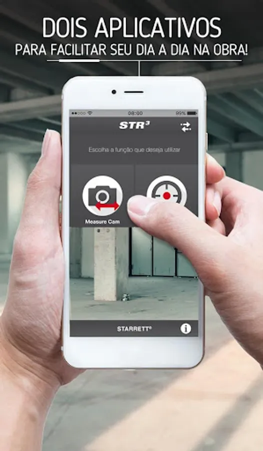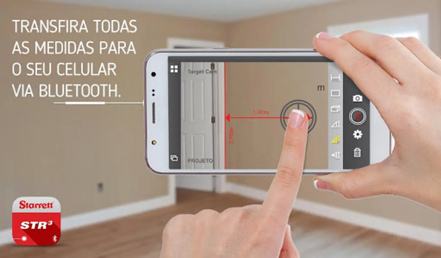 Baixe o aplicativo STR³ em seu smartphone e aproveite as funções Target Cam e Measure Cam em seu Medidor de Distância a Laser LMXP-100 Starrett.