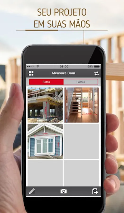 O Measure Cam permite que você adicione as suas fotos notas de texto, videos, audios e cotas de medição. Tudo isso para ilustrar muito melhor suas medições enriquecendo-as com informações relevantes e precisas.