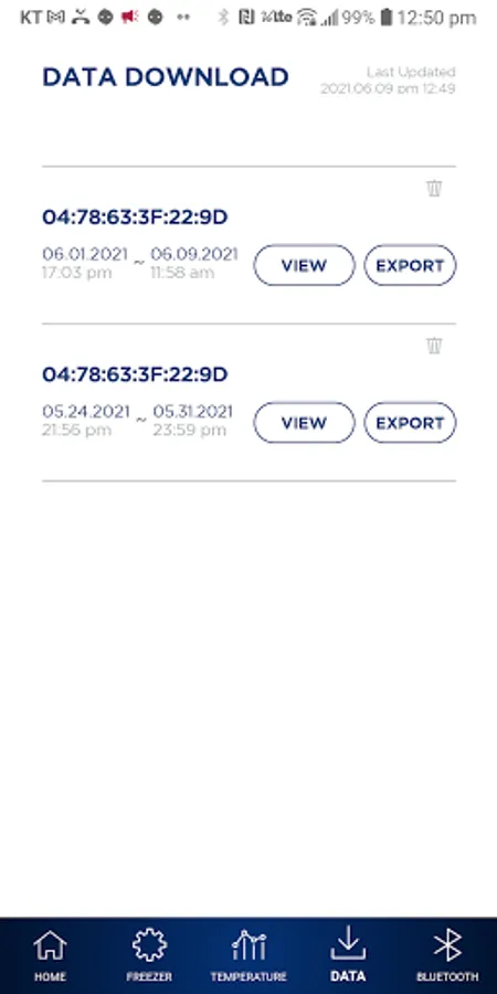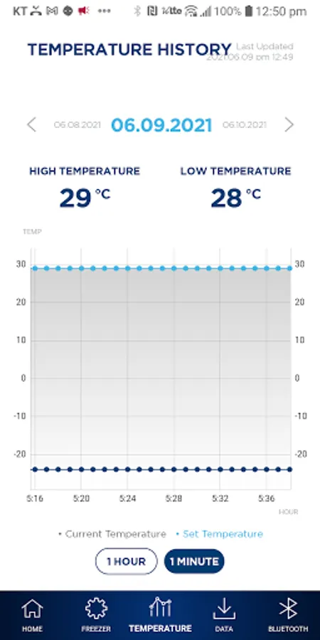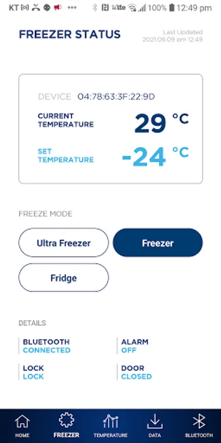 Since the BLE module is installed in the ULT freezer, the current status can be monitored wirelessly. In addition, it is possible to continuously store key data such as temperature, transmit it to the outside, and display it as a temperature graph.