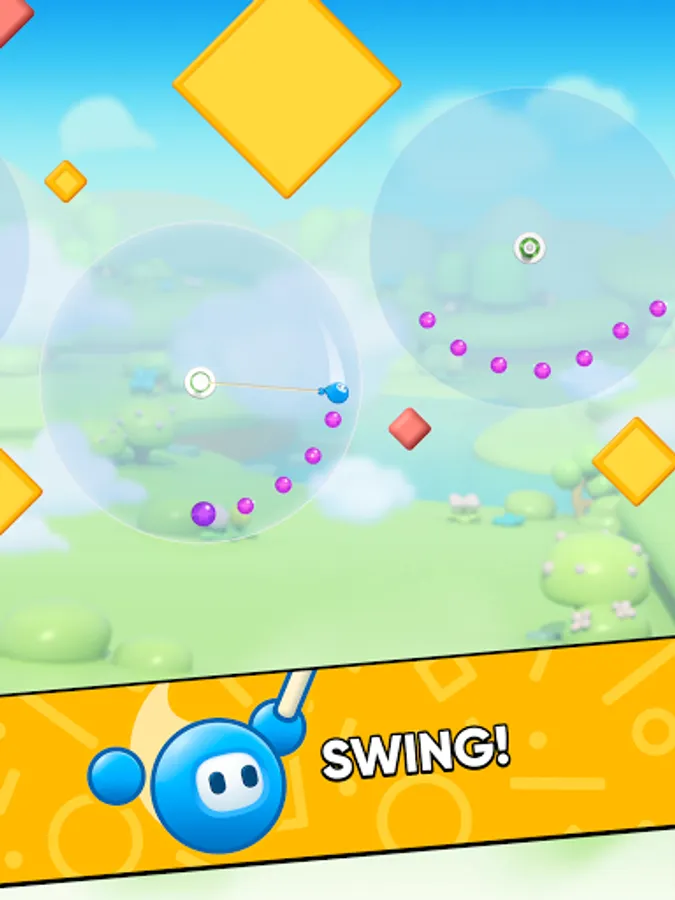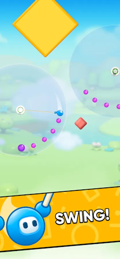 Swiing is a one-touch arcade platformer, where the objective is to race across the terrain as fast as you can while avoiding hazards and pitfalls. In this exciting rope swinging and flying game, be careful not to jump off too early and fall short! Tap to hook your character and hold to swing & spin until you reach the perfect speed, then release to launch your character at the right time. Use cannons and conveyors in your favour to make your way through the levels faster. Donβt forget to collect coins along the way to earn extra points but be watchful of the risks and obstacles involved. Aim and try to hit the bullseye at the end of each level to give your score a boost! Show your friends how you can beat gravity and showcase your physics skills!