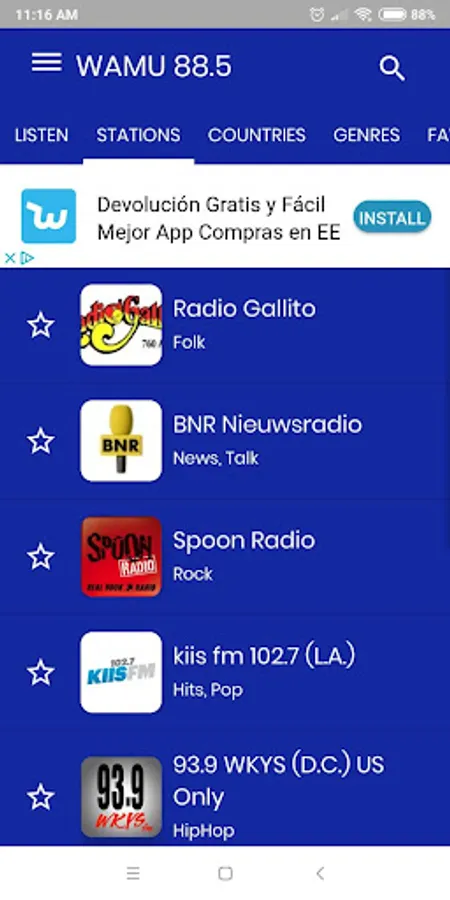 In Radio WAMU 88.5 D.C. you will find in addition to your favorite station many others from different countries.
