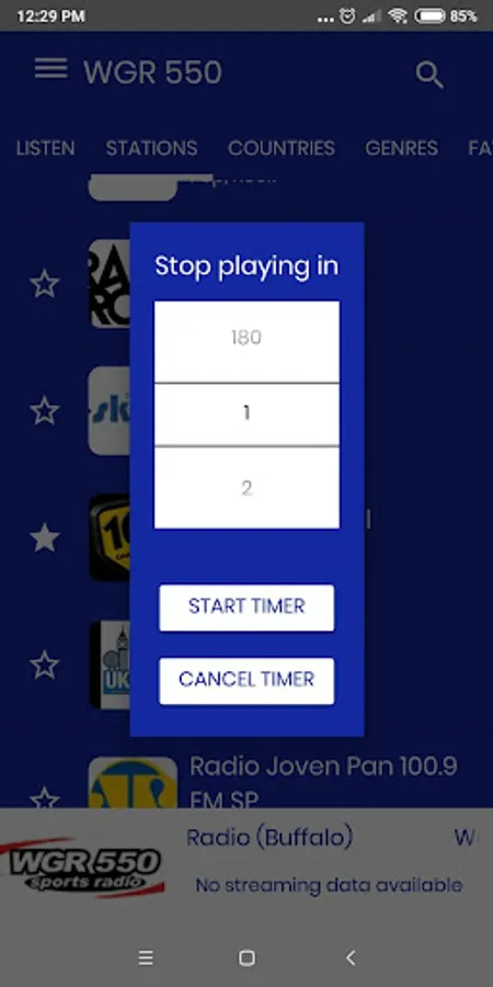 In WGR radio 550 we have included a timer for you to deprecuss the application when you go to sleep, choose the time to close the application and do not lose the life of your battery.