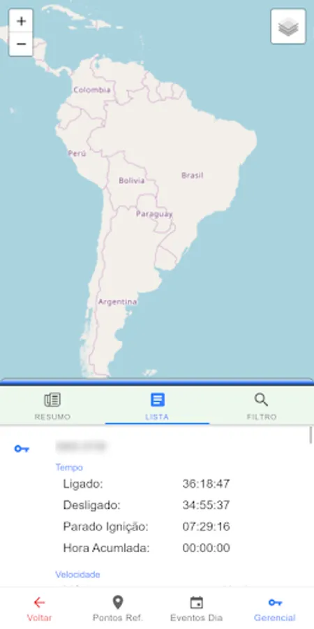 Screen that shows the management data related to the fleet presented in the initial menu. Its functionality is separated into three tabs, the filter tab with the fields to be considered in the report and the fields described in it, the list tab shows the reporting data according to vehicles, and the summary tab provides a conglomerate of the information listed.