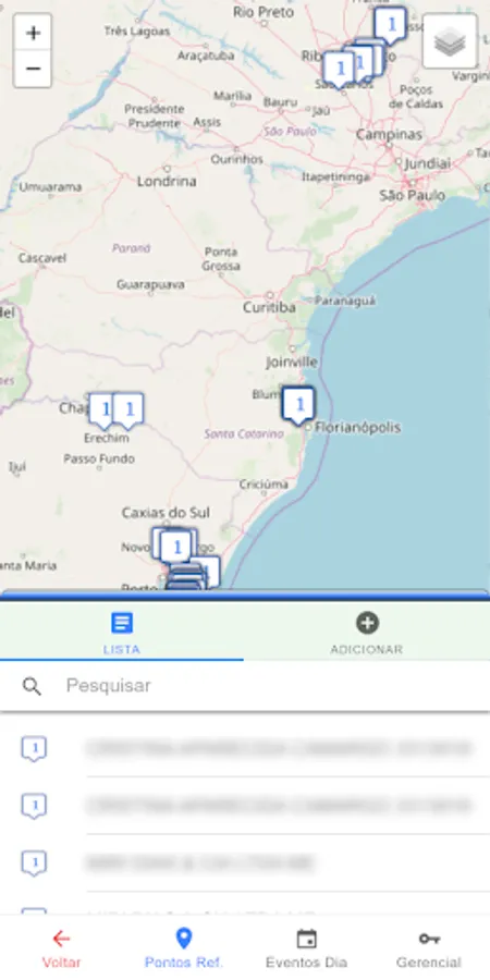 It lists the points of reference already registered and allows the registration of new ones, based on the current address of the user.