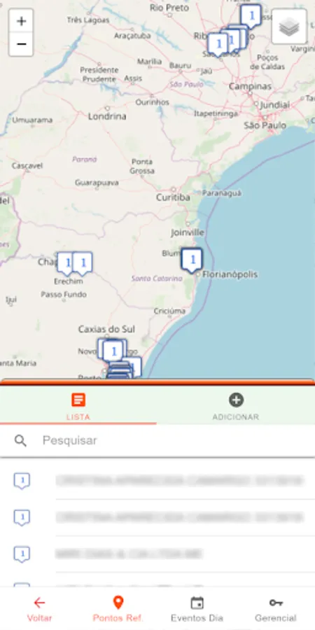 It lists the points of reference already registered and allows the registration of new ones, based on the current address of the user.