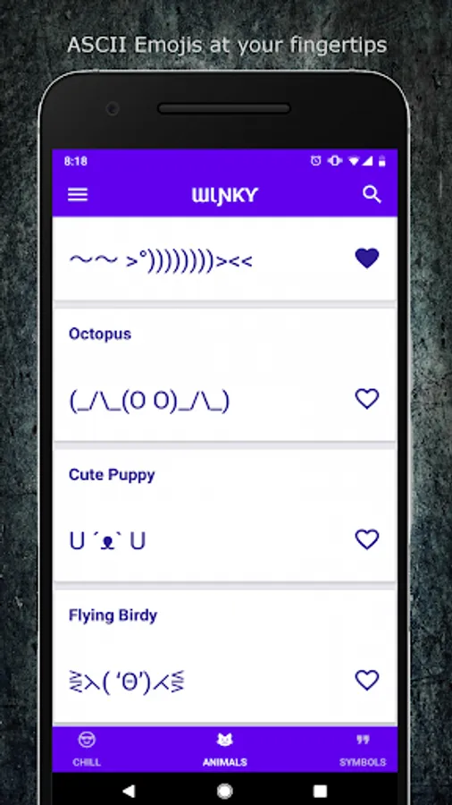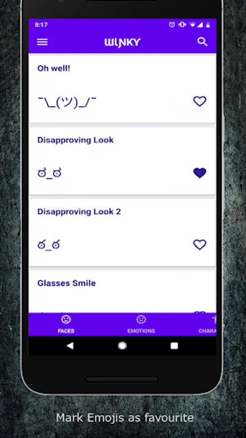 Well, don't wait for the next update! Swipe left and head to "Custom" section .. create your own emoji there or copy any emoji from other places and paste in this app. Winky will store your custom emojis for you. Access them anytime from the Custom Section. Now you have one app to collect what you need of ASCII emojis ᕕ( ᐛ )ᕗ
