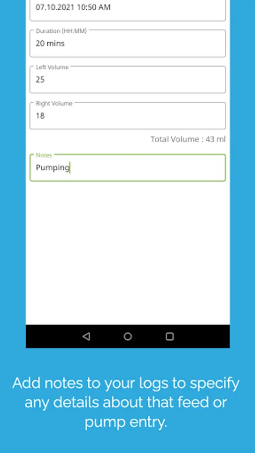 The app has a built in timer feature that allows you to log the start time and duration of pumping or feeding in an easier way.