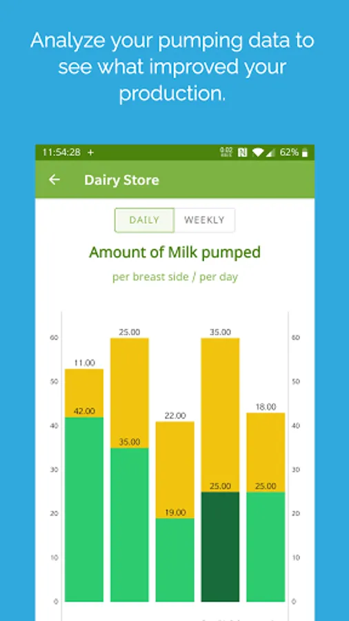 This pump log app allows you to track your Breastfeed or Breast pump data so that you get an overview of your production. You will be able to understand on which days of the week your production is more.