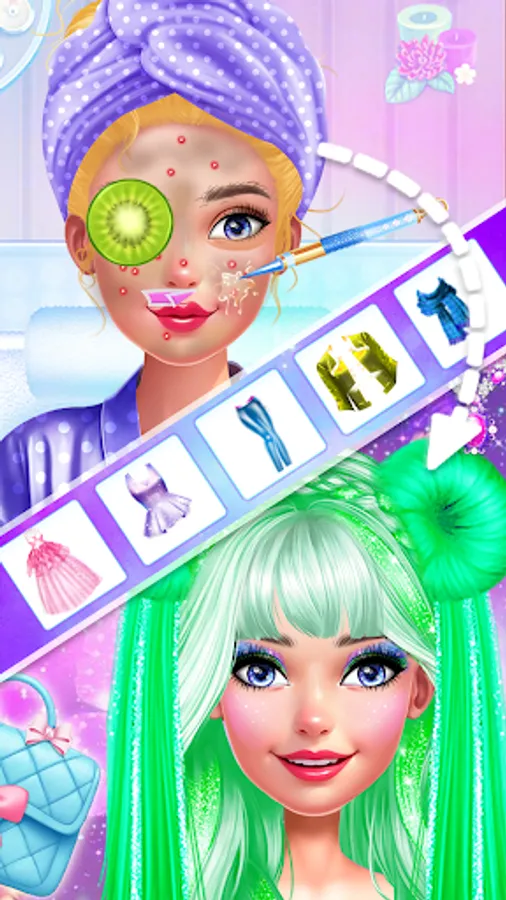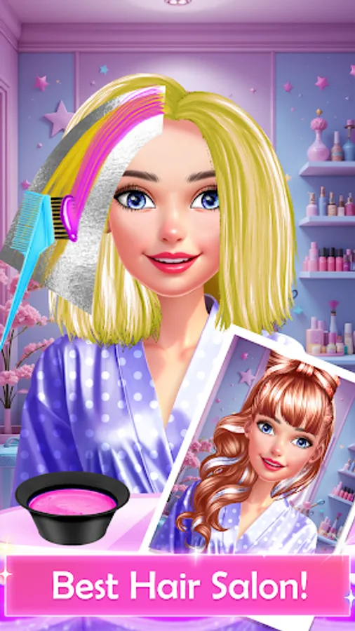 Spending a day at a hair salon is so fun especially when you want to try out new looks. In this exciting game, you have the opportunity to become a hairdresser, a stylist, and even a makeup artist. Start by pressing the ‘play’ button and let the adventure begin. The first level takes place at home, where you can try out cool outfits and shoes that match them perfectly. On the right side of the screen, there will be loads of styling options you can choose from such as trousers, skirts, bags, shoes and so much more. Once you are satisfied with your look head over to the second level which is the birthday party story. Here you will be able to pick different items as gifts: opt for a sewing machine if you are into fashion or for a camera if you want to capture beautiful moments. Play as much as you like and in time all of the levels will be unlocked. Next, I suggest we go to the department store where you will find new objects to purchase. Tap on the ‘shopping’ icon and place all of the things you want to buy in the cart, make sure to have enough coins to buy them. For the fourth level, we have decided that a spa is perfectly suitable. Now we should go to the face spa: prepare yourself for the most relaxing experience. The girl is sitting on the table, her hair is pinned up and a towel is covering it: she is ready for the magic to take place. Use the available tools such as different face masks, treatments, and even tweezers to achieve a perfect look. Being an estethician might seem like an easy task yet sometimes things do not go as planned, but do not worry as you will be guided step by step. After the trip to the spa is over you can experience other activities as well. Some of these include learning how to professionally style the girl’s hair, doing a fun photoshoot, learning how to apply various makeup products, and many others. Makeup is pretty important for a makeover. Eyeshadow can brighten up the girl’s eyes and change her whole appearance, apply mascara as well. Conceal her dark circles and bear in mind that lipstick is essential. Opt for a bold shade of pink and show your true colors through this make-up look. Do not forget to tune in daily to unlock all of the amazing levels and features that we have prepared and most importantly to have fun.