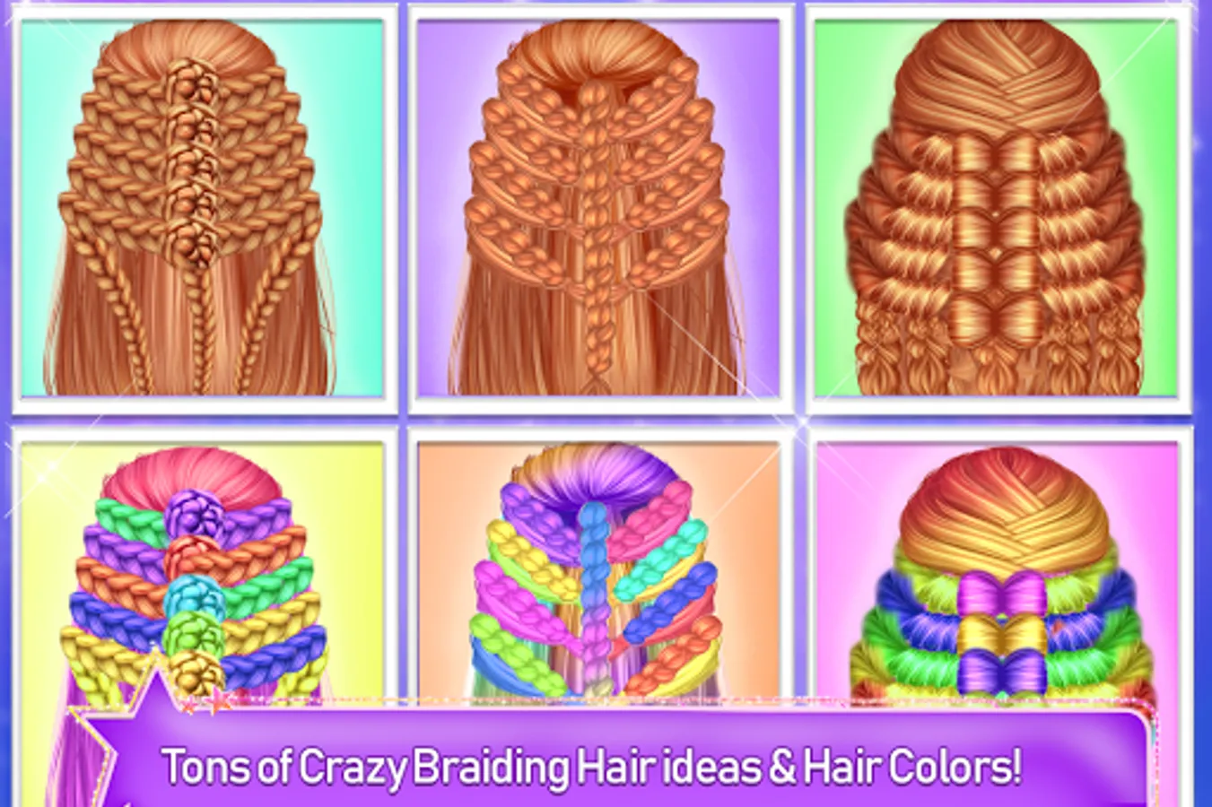 There are so many things you can do with your hair to look marvelous, but if you are a princess you must have your hair arranged all the time. Come and play this princess game where you are going to help out a girl to renew her hairstyle with a total makeover. You should from the beginning that there will be four main steps that will get you to the final and wanted result. Before you can do any changes to the princess's hair you have to take good care of. In this phase, you are about to clean her hair with special products that will make it luminously and smoother. Apply some conditioner as well, then wash it so you can cut the split ends. Remove the unwanted hair and make her look fresh. Now that you know how to nurse her hair you can move into the braiding part. Choose from the multiple styles this game provides and try to do as it says. Step by step, strand by strand, you will learn how to have a braided hairstyle with cute details. You can also choose the color of your headdress. Combine the hair dye and get some rainbow colors to revive the princess look. Mix the dye tubes and get the color in her strands. Use as many colors as you like and try to make something different. Now that her hairstyle is improved you can work on the outfit part. Here you will highlight her new hairstyle by changing the way she dresses up. Put on a beautiful princess dress and customize a pair of colorful shoes to it. Don't forget about the accessories because it will make her spark. Try multiple outfits and find the one that fits her better.