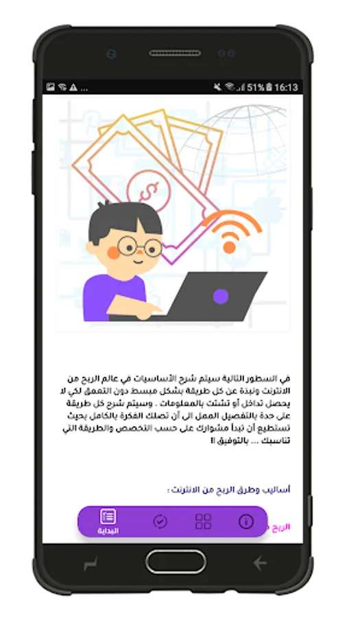 The information is presented in a simplified and easy-to-understand manner, which helps users to understand the concepts and apply them in their daily lives when profiting from the Internet. The application also provides the ability to send inquiries and questions to clarify some matters and follow up with users in the field of "Profit from the Internet for the year 2023".