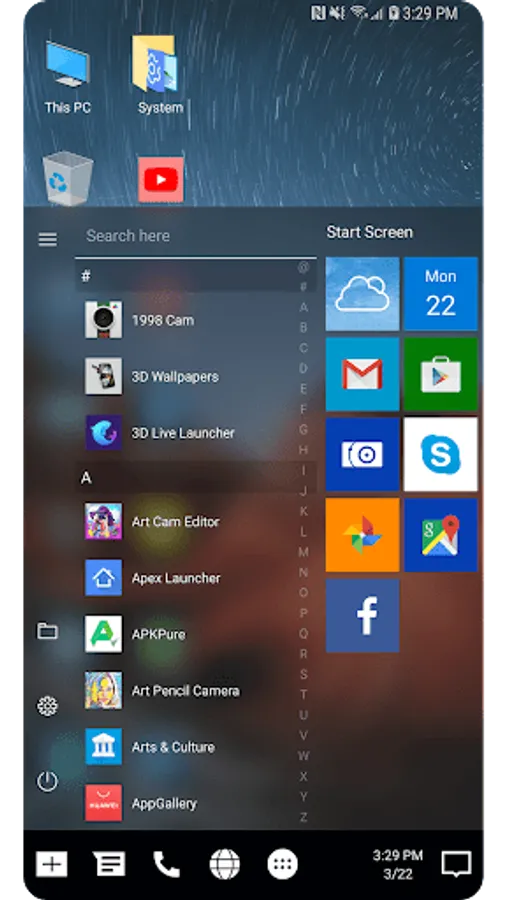 Winner Computer Launcher is a PC computer style launcher, it has many useful features and many cool themes, it let you use your phone with PC computer launcher experience.