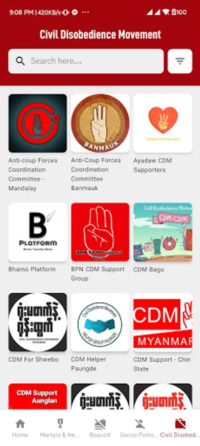 - List of Organizations that supporting and helping the people who are doing CDM against Dictatorship.