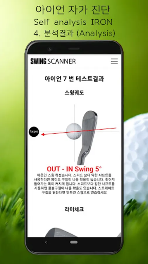 We have developed a self-diagnostic kit that have the best solution to these problems. This is the Swing scanner that works with the mobile app. By attaching a sticker to the club head and hitting the ball, you can easily check the RBI, swing trajectory, and lie through scratches that occur at impact. The mobile app show your level in a graph, letting you know what practice you need and what intensity you should use. The swing scanner will help you solve the troubles of boring golf practice and improve your skills. Swing scanner kits are available online and in offline golf shops.