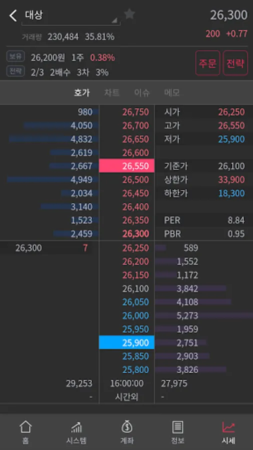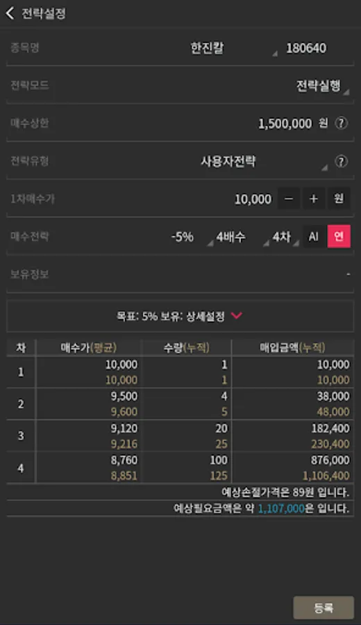 1. Buy strategy: It helps you to enter the stock from a lower point through the N-th buy strategy by setting the weight of your investment. You can visualize the buy price range and see it at a glance on the chart.