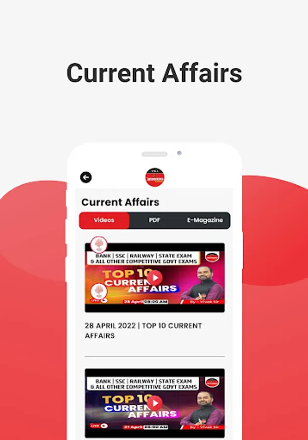 This app has Videos, Study Materials and Test Series for Bank PO/Clerk, SSC, Vyapam, MPSI, Railway and All Competitive Exams.