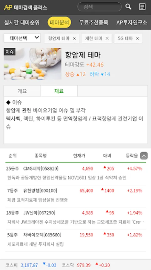 It shows each theme information and item information, and you can grasp basic stock price information and fluctuation rate of the stock at a glance, and you can also check interest setting and real-time news.