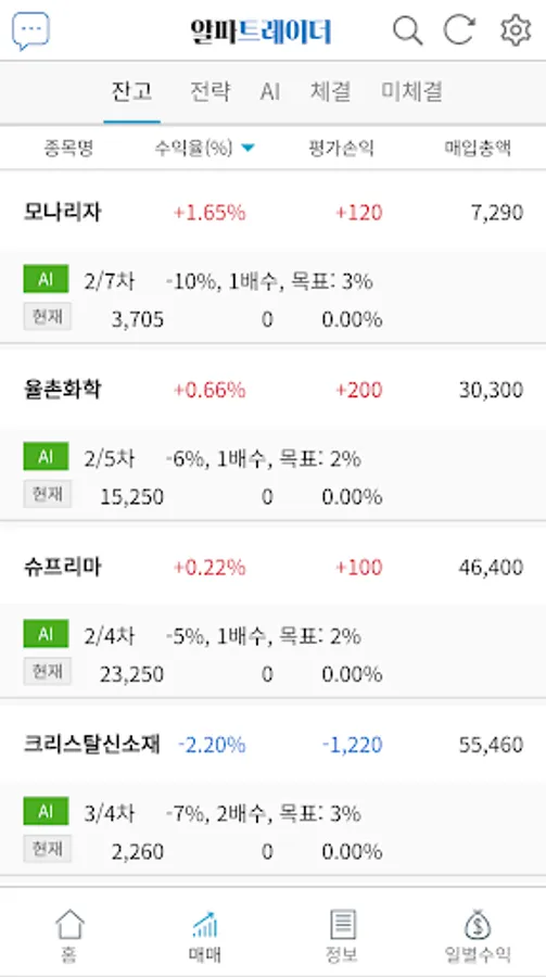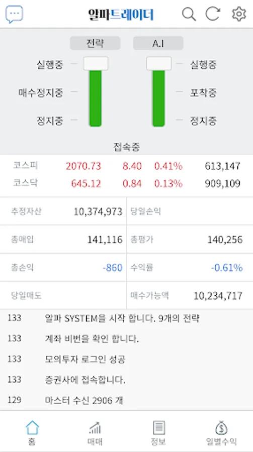 1. One-click auto trading-If you run the AI mode, artificial intelligence is automatically executed from the selection of stocks to trading.