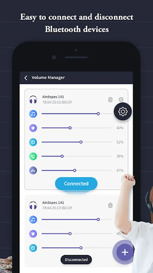 With Pair: Bluetooth Volume Control app you can store your preferred volume for each of your Bluetooth devices and when your devices connect to your Smartphone or Tablet, your music volume will be adjusted automatically.