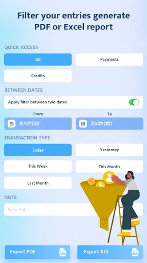 - Share all your transaction detail with pdf and Excel file