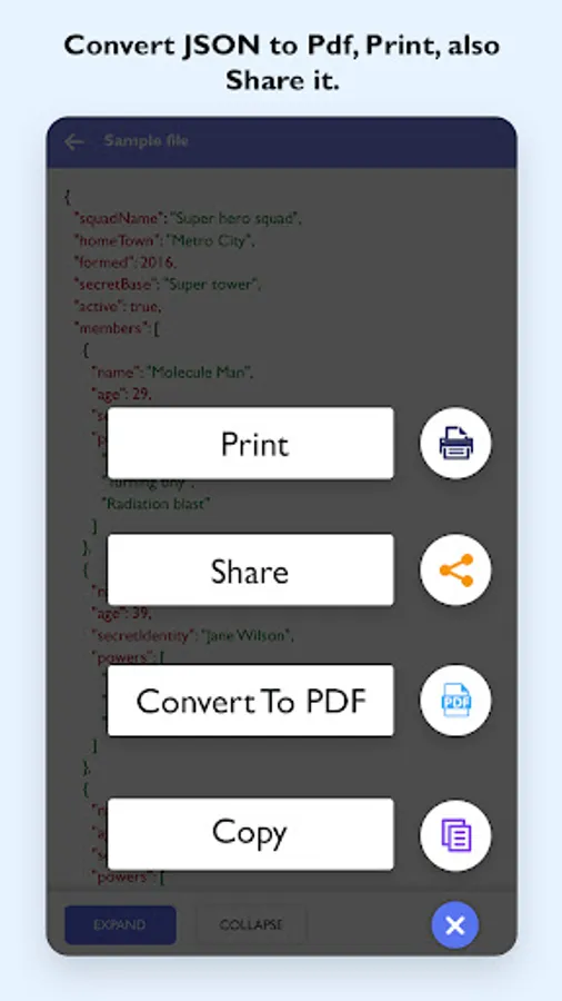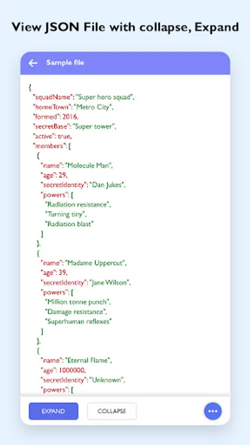 JSON Viewer and Beautifier is a lightweight application that will read JSON data, expand and collapse JSON view accordingly. Opening a JSON file on a smartphone is now easy with this JSON Viewer and Beautifier app. This JSON file Viewer has also made JSON file sharing easy.