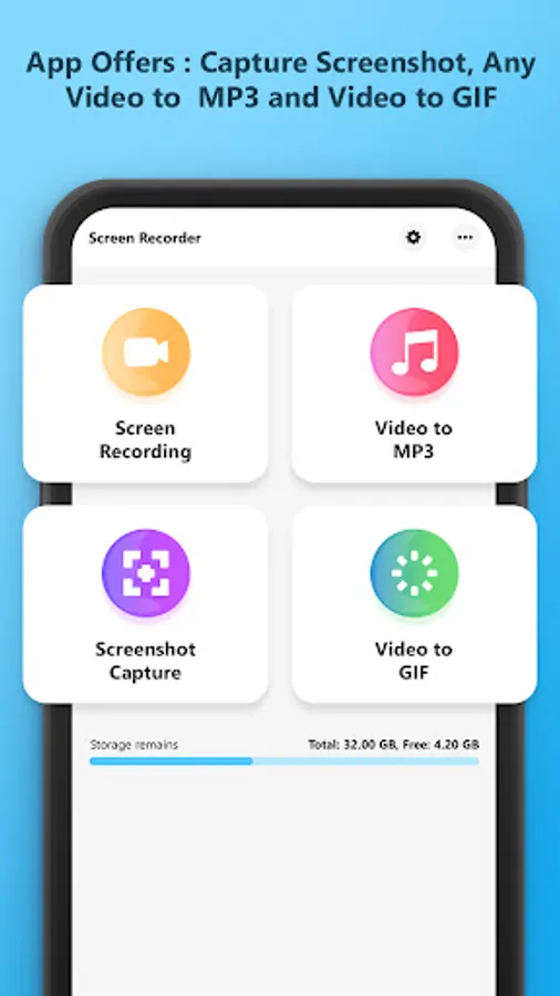 - Storage: Used for saving and editing recorded video & screenshot files.