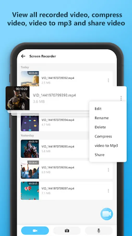 Screen Recorder & Screenshot is an app to help you record apps/games along with your face using your phone's front camera.