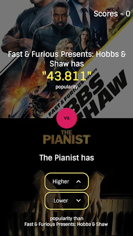 In this game, you can play HigherLower Game based on Movies' Popularity and Released Date. The game has 2 modes, play based on