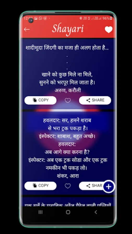You can copy your favorite Shayari by just one click and share it via any messenger application.