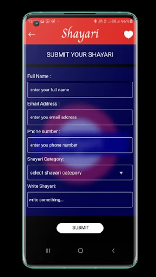 Shayari app provide Love Shayari,Dhokha Shayari,Good Morning Shayari,Good Night Shayari,Funny Shayari and Other Shayari.