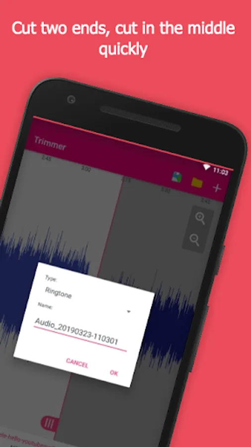Cut the best part of your audio song and save it as your Ringtone/Alarm/Music File/Notification Tone.