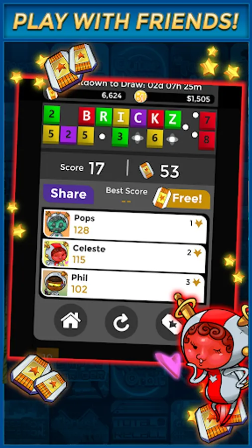 It's very simple, every draw we are sharing back a portion of our advertising revenue with one lucky winner. The larger our user base grows the more dollars we will give back. There are no in app purchases and no paying to win. We are calling our model Free-2-Win and we are very proud of it, so download Brickz and check it out for your chance to win cash! Why would you play anything else?