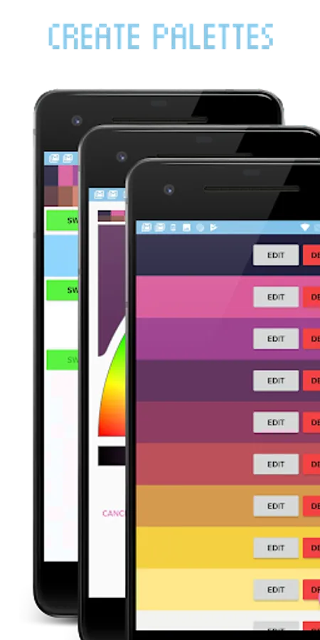 - Create and save your own color palettes.