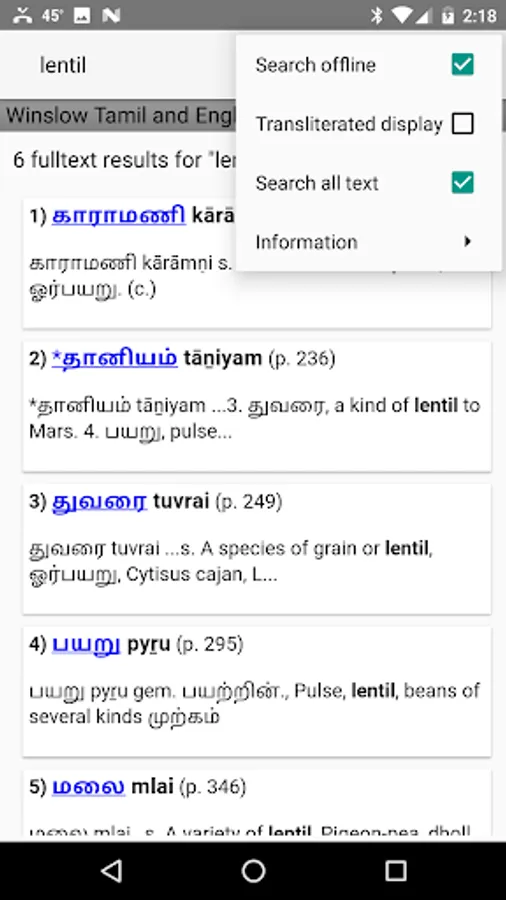 Winslow Tamil allows users to conduct both headword and fulltext queries.