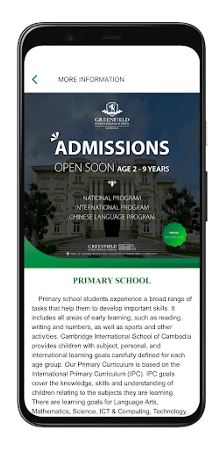 Greenfield International School is to become a well-established educational provider that centers on educational excellence, lifelong education, global citizenship, and welfares.