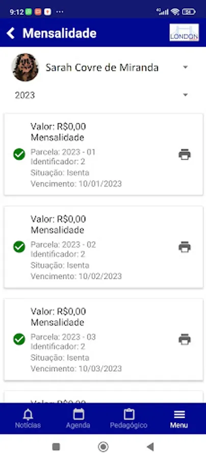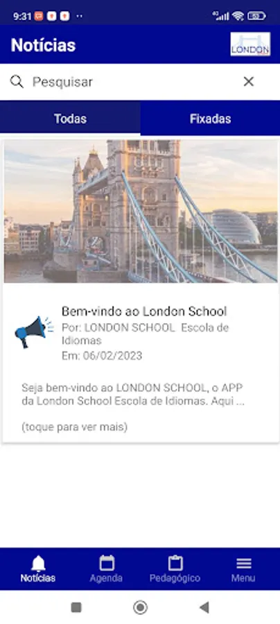Londo School Escola de Idiomas application that allows queries to the bulletin, monthly fees, school hours, disciplinary follow-ups, in addition to having a school calendar and news panel for efficient communication between the school, students and guardians.