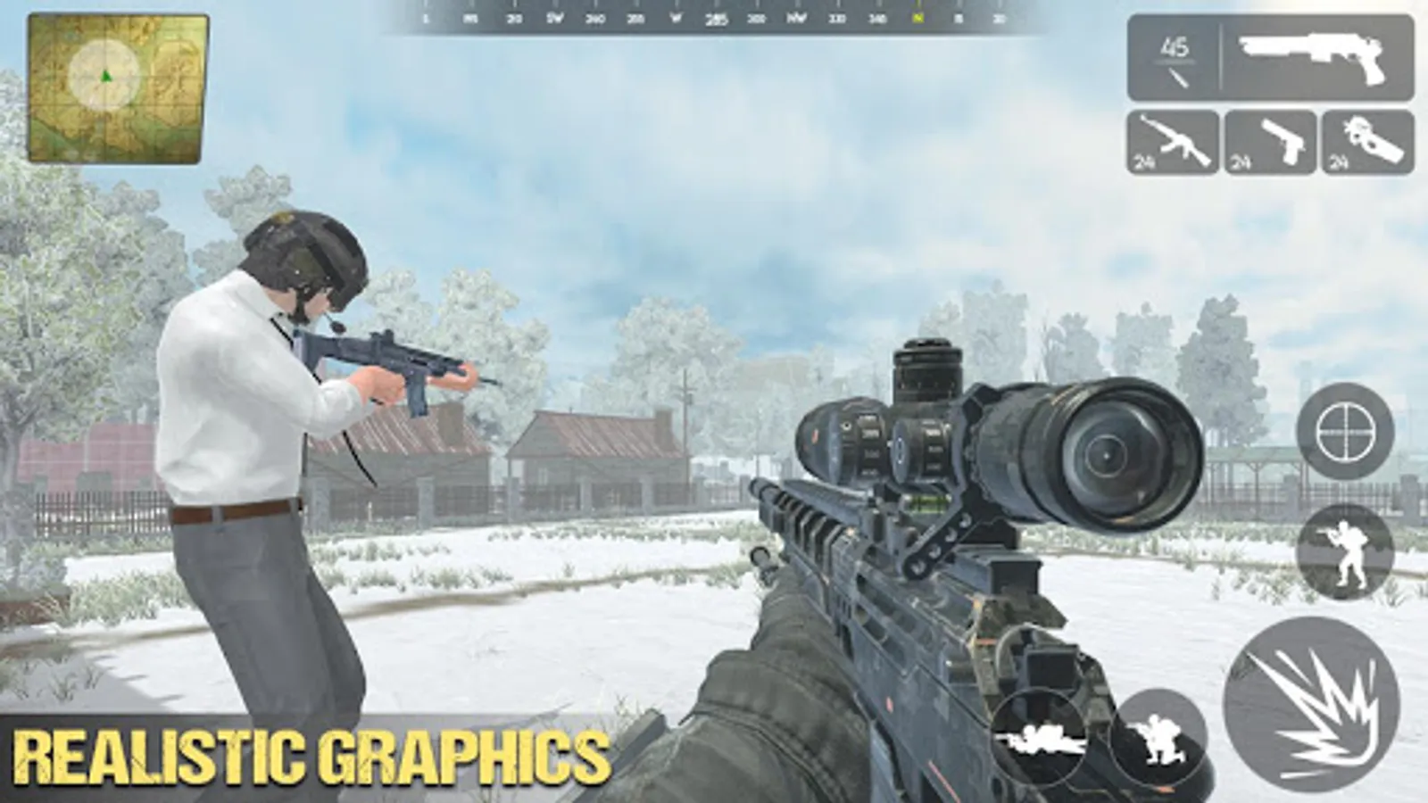 Play non-stop action filled modern sniper winter survival fps free shooting game.