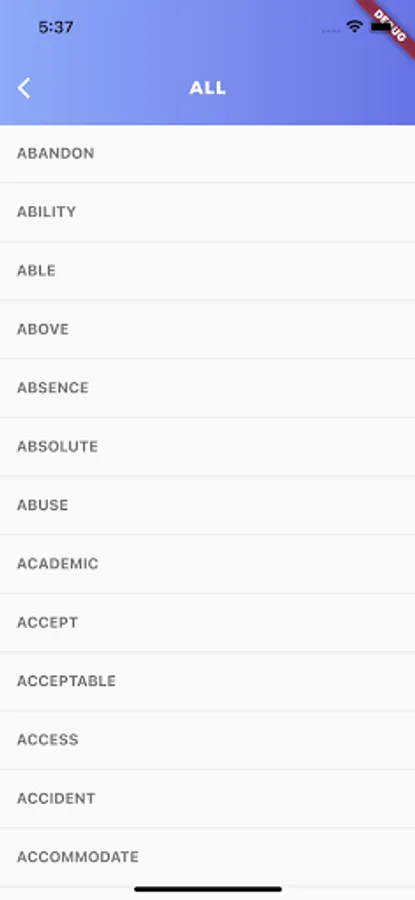 Over 1900 words categorised into lists, such as nouns, verbs and adjectives
