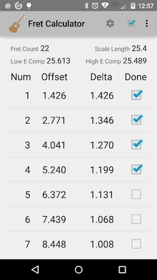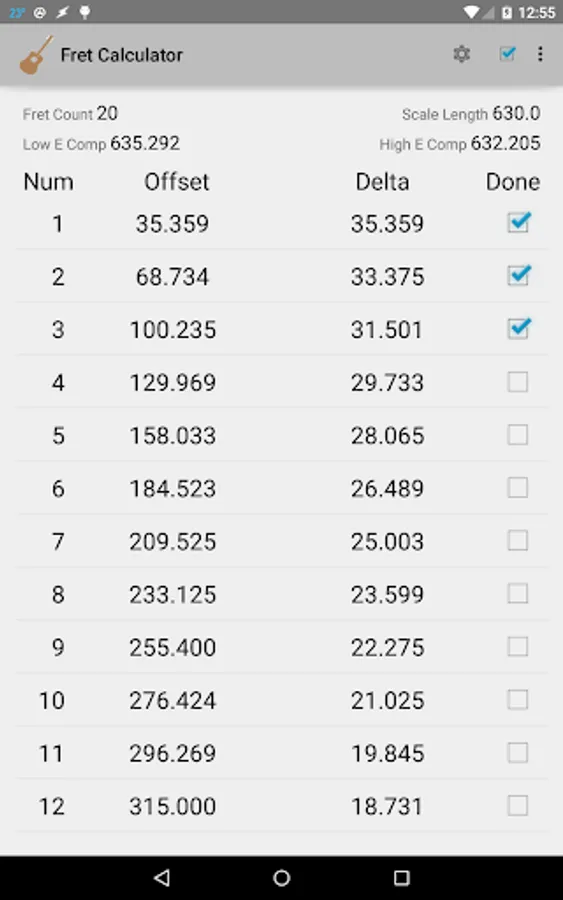 • Calculates the nut-to-fret distance