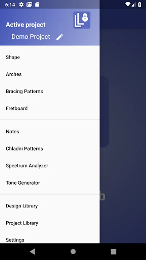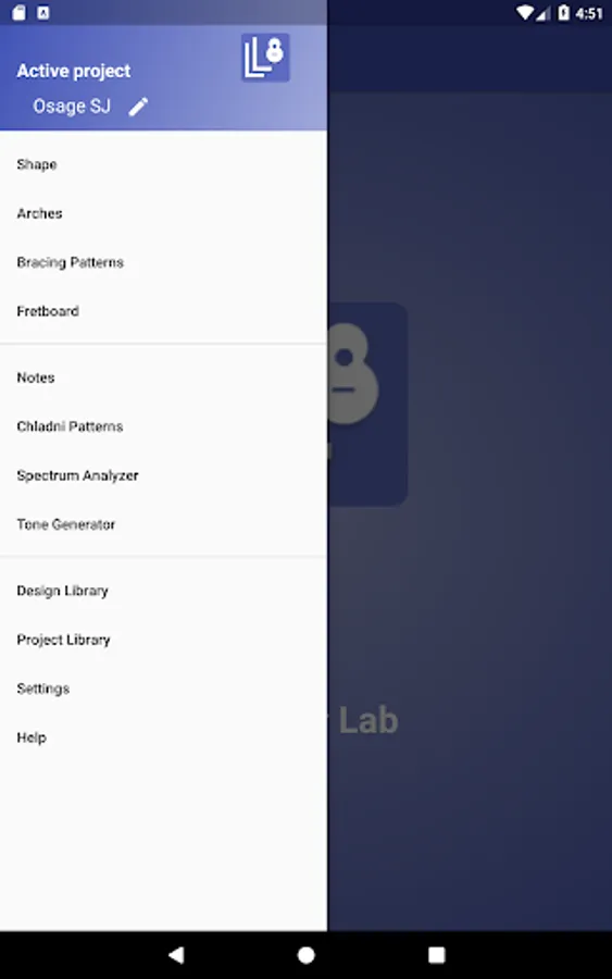 • Projects can be shared with other Luthier Lab users via import/export