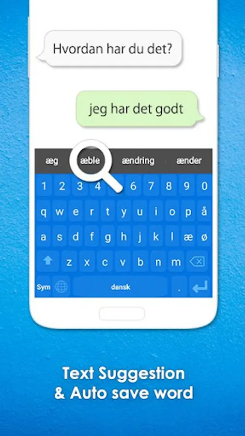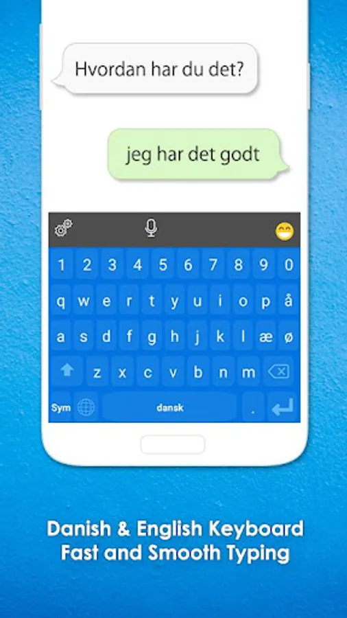 Download complete keyboard with Danish & English keys and enjoy the rapid completion of letters and messages. Let's have a conversation with friends and family and it is possible by Danish language, English keyboard free download and send beautiful smiley’s from Danish English keyboard with emoji. Danish keyboard typing is leashed with Danish and English letters at a time and user has a choice to select either language for typing and writing purpose. Danish language for Samsung keyboard is completely under command keyboard for latest and stylish Danish with every touch.
