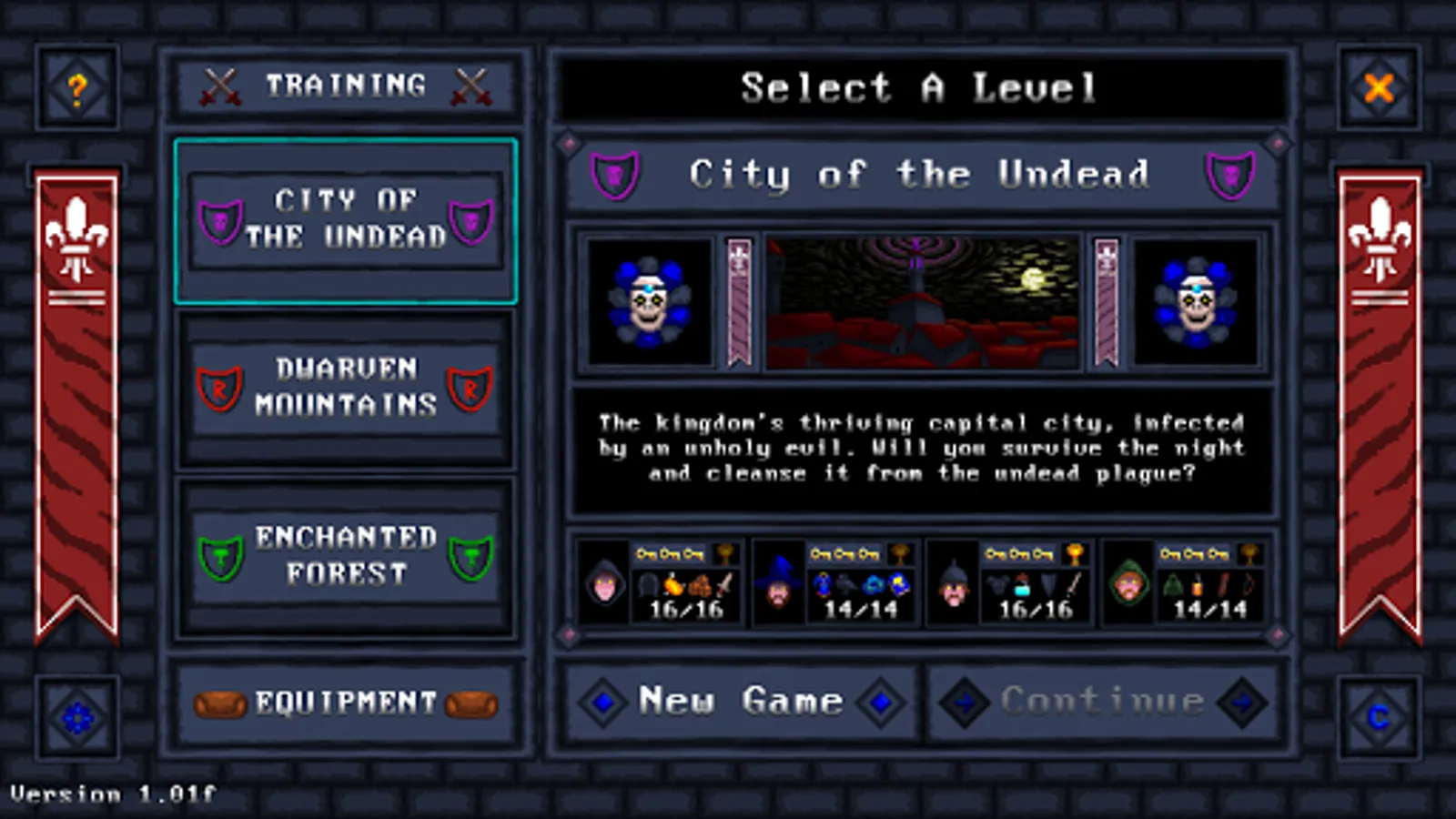 Dungeons to explore. Traverse a city cursed with an undead plague, a dwarven mountain full of dangers and treasure, and an enchanted forest where few come out alive, each with over 12 different areas to explore and lots of items to unlock!